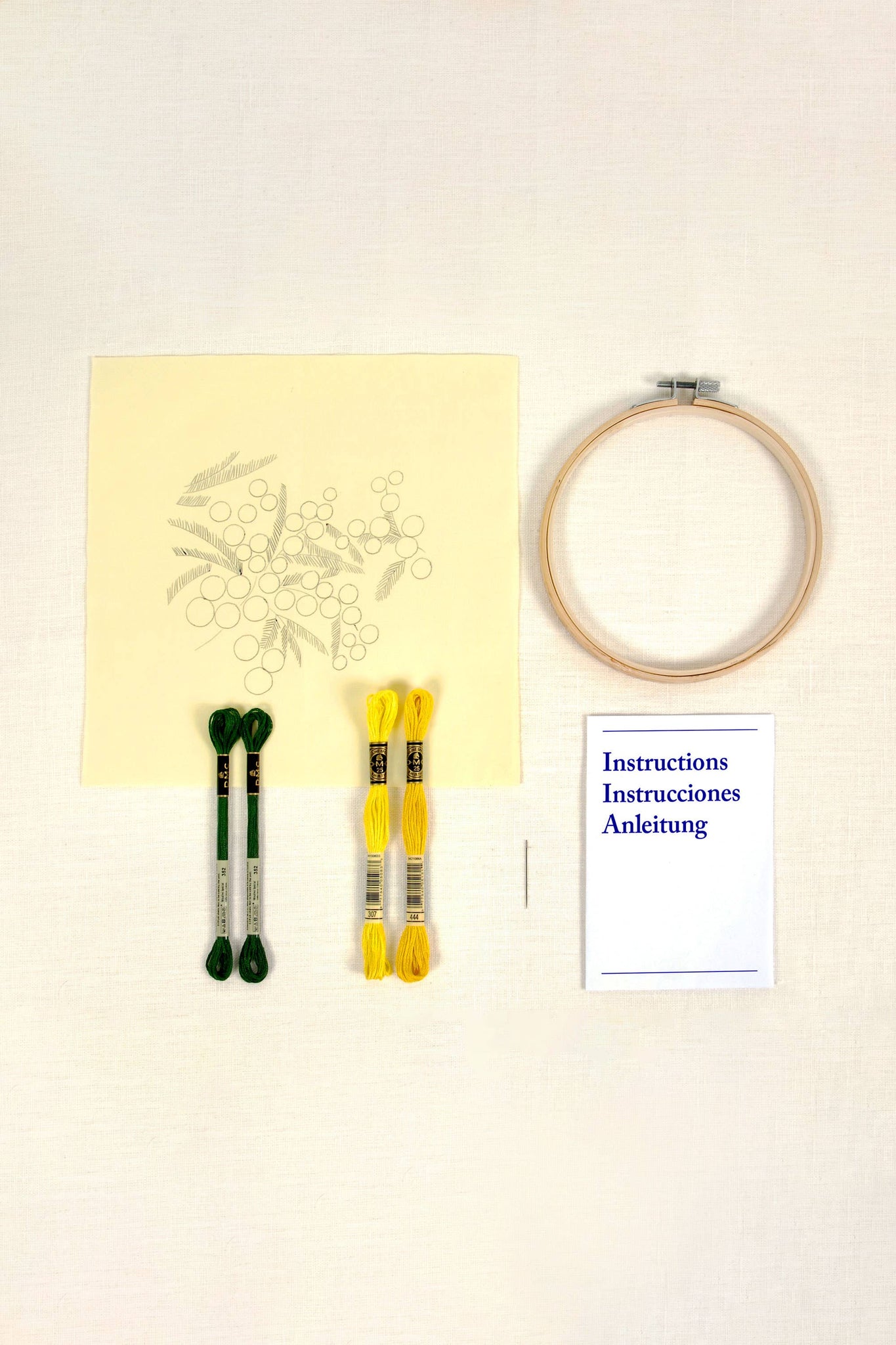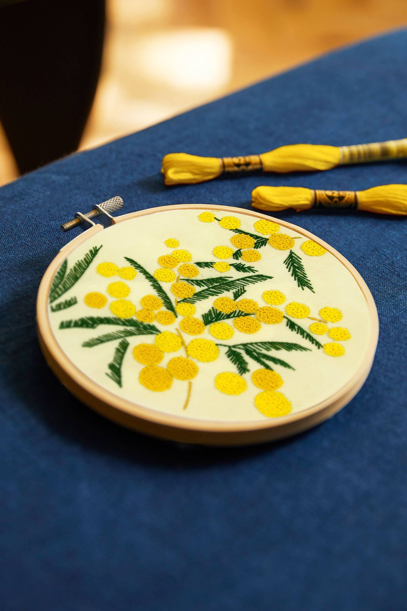 Using french knots and straight stitch and stem stitch you can create this modern floral embroidery that captures the exuberance of the Mimosa shrub. Marie-Dominique Procureur's designs are often inspired by flora and fauna. Here she has used the stitches to add texture and detail. The kit includes thread, fabric and all the accessories you will need as well as full instructions. You can also look at the step-by-step diagrams and video tutorials for all the stitches on our website. 2 x Six-Strand Embroidery Floss 2 m / 2.2 yd skeins - 100% cotton 2 x Six-Strand Embroidery Floss 8 m / 8.7 yd skeins - 100% cotton 1 x printed fabric 24 x 24 cm / 9.4 x 9.4 in - 100% cotton 1 x hoop 14.5 cm / 5.7 in 1 x embroidery needle 1 x instructions EN / FR / SP / DE / IT / PT / NL / JA