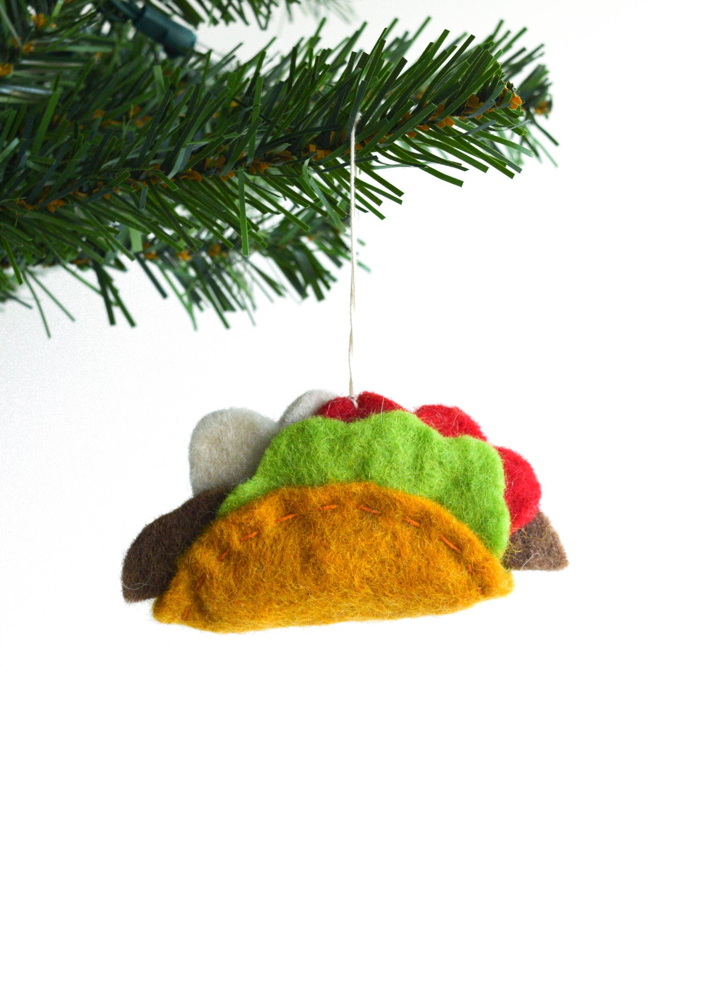 The Handmade Taco Felt Ornament from Nivas is a charming accent piece for your home. Made with 100% wool felt, each ornament is ethically sourced and handcrafted, embodying our brand's commitment to eco-conscious living. This ornament, part of our home accents collection, is a testament to our minimal electricity usage in the manufacturing process. Enjoy a touch of hand-loomed craftsmanship in your home with our delightful Taco Felt Ornament.