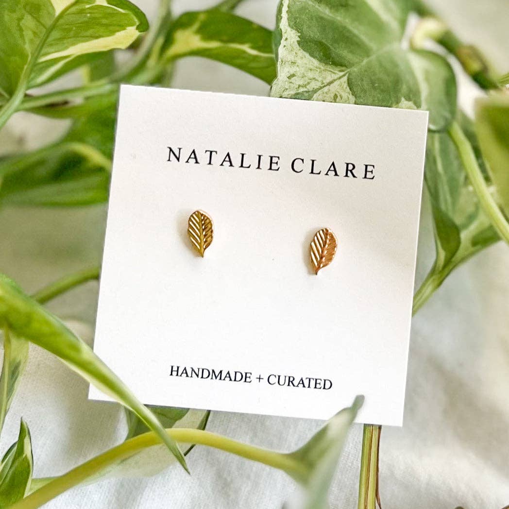 The Little Leaf Stud is made of golden stainless steel measuring 10x5.5mm. Its textured leaf lines evoke a sense of nature and add a unique touch.