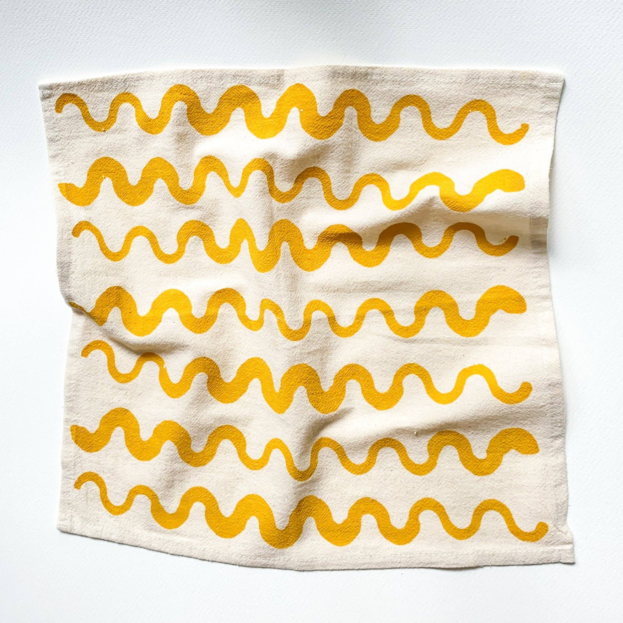Add a stylish & sustainable touch to your table with hand-printed cloth napkins detailed with cute and colorful wavy stripes.