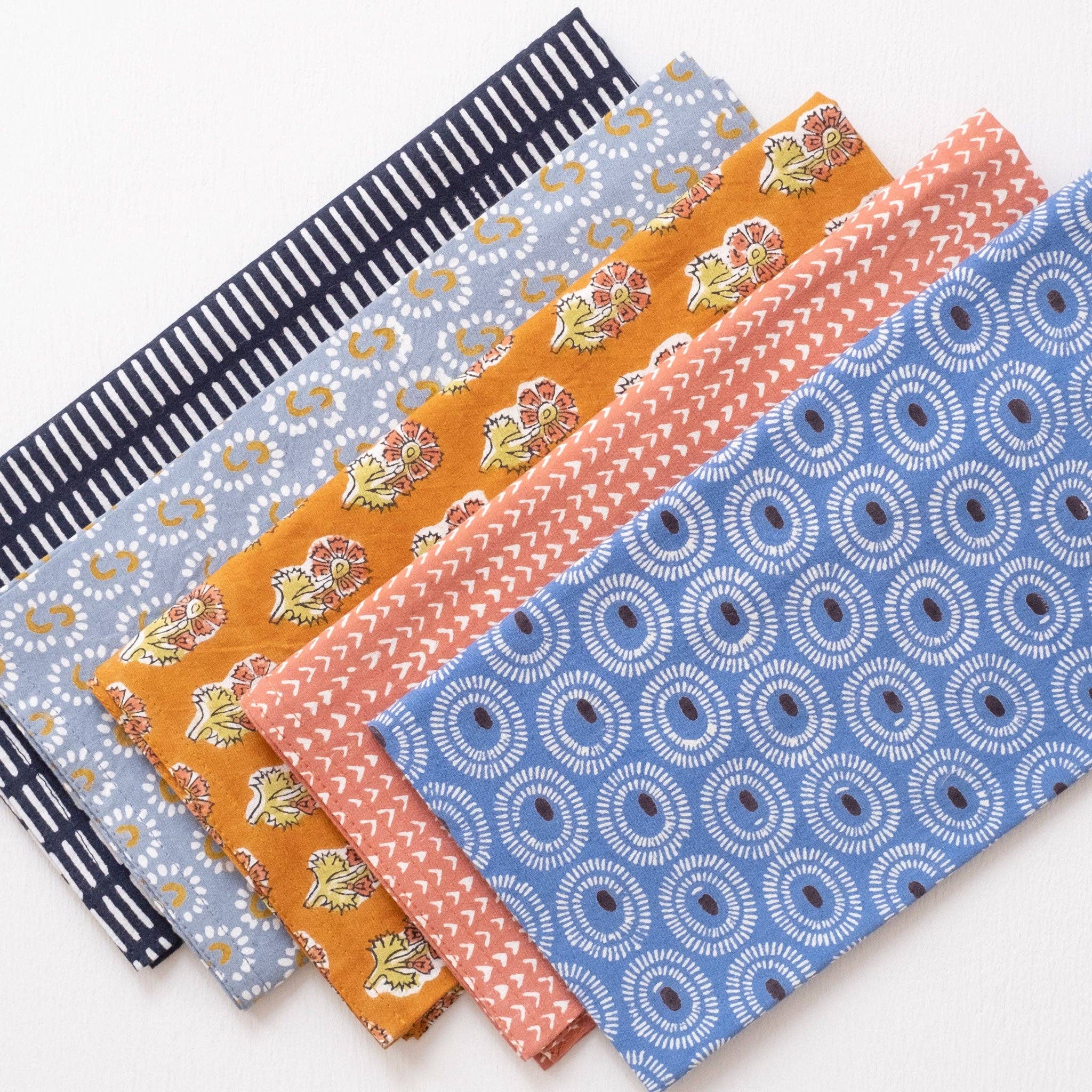 Our block printed napkins are fun, easy to care for and pair wonderfully with our tablecloths. An easy, eco friendly alternative to paper towels, they come in an array of designs that can be mixed and matched. We love using them for our casual everyday table, and also for fancier meals.