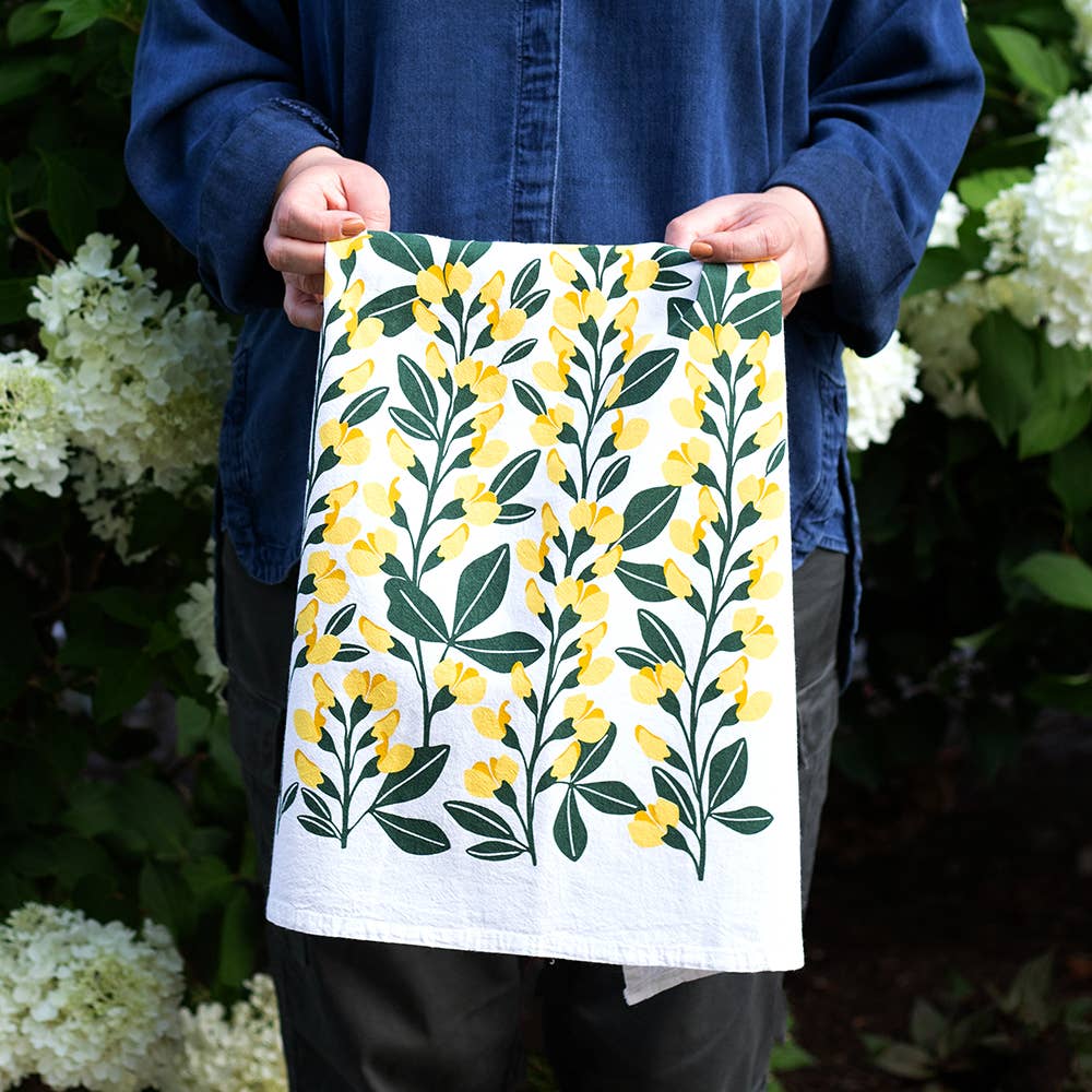 Features hand-drawn illustration by Susan Hazel. Finished by hand in our Ohio studio. Because of the fabric's natural whitening process, a minimal amount of colored threads may appear in the fabric of our towels.