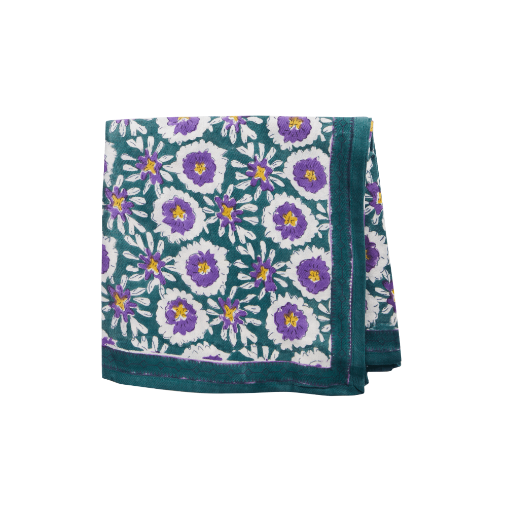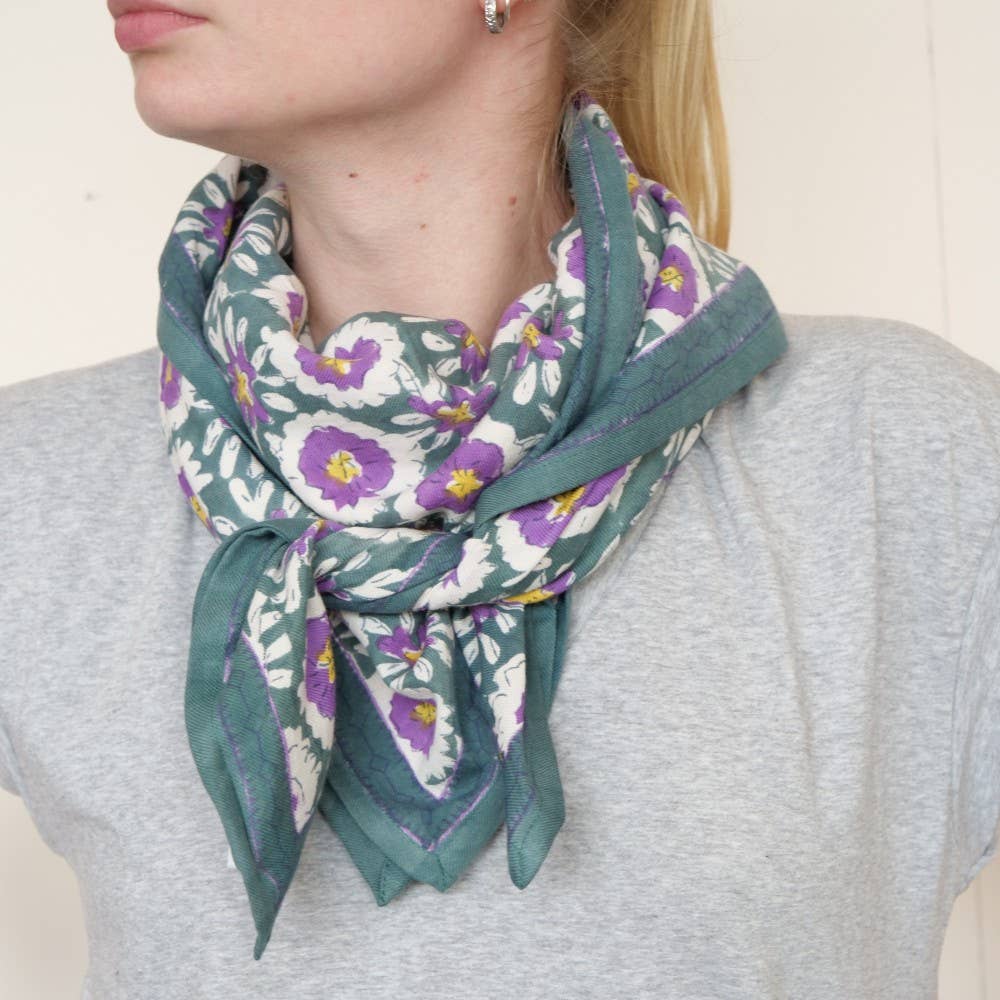 Fashion scarf with "Indian-style" print. Lovely exclusive pattern designed by Bonheur du Jour. Super soft pure cotton fabric. 100x100cm. For easy care, wash at 30° delicate, wash with similar colors, low-temperature ironing, gentle tumble dry.
