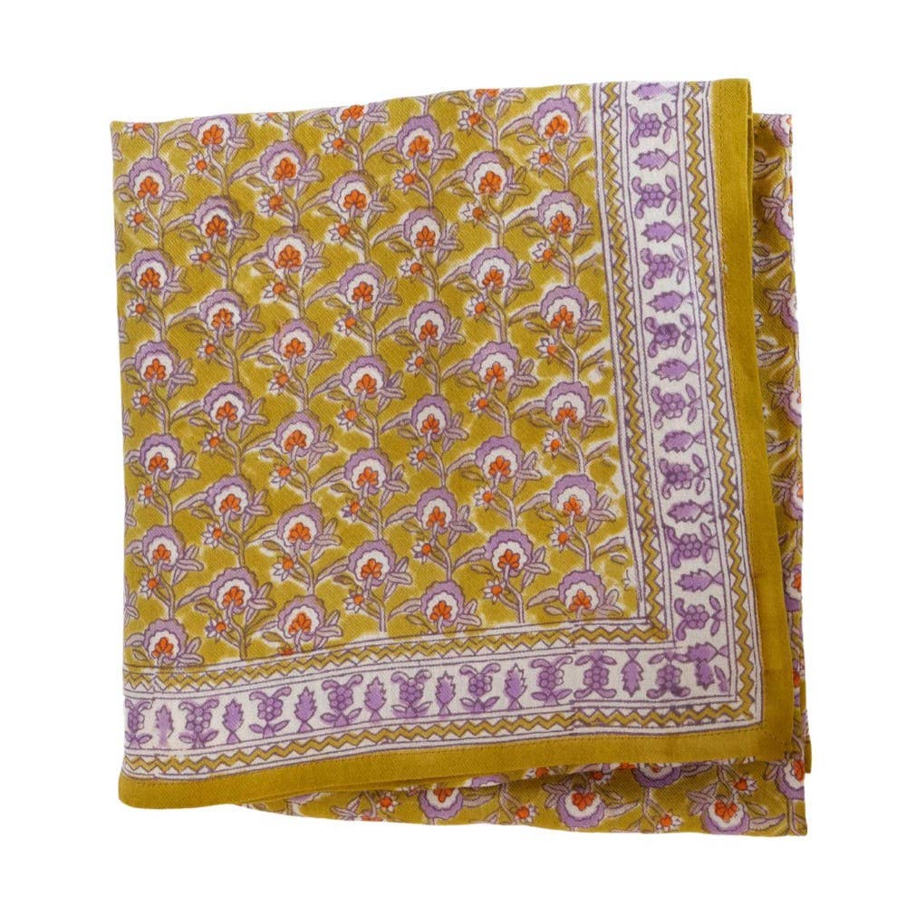 Fashion scarf with "Indian-style" flower print. Lovely exclusive pattern designed by Bonheur du Jour. Super soft pure cotton fabric. 100x100cm. For easy care, wash at 30° delicate, wash with similar colors, low-temperature ironing, gentle tumble dry.