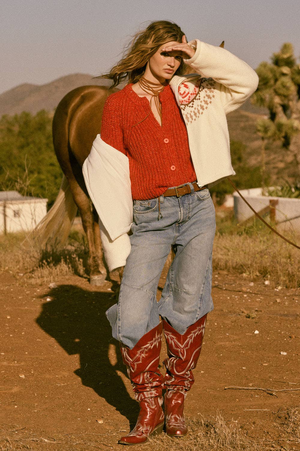 UT280 A multi-color ribbed-knit cardigan sweater with the following features: Round neckline. Button-front closure. Long sleeves. Ribbed knit neckline. Relaxed fit. * RED ORANGE 1st cut SOLD OUT. 2nd cut ETA: 10/30/2025. Model Info: Height: 5 ft 9 in | Bust: 31 in | Waist: 24 in | Hips: 34 in | Wearing Size S.