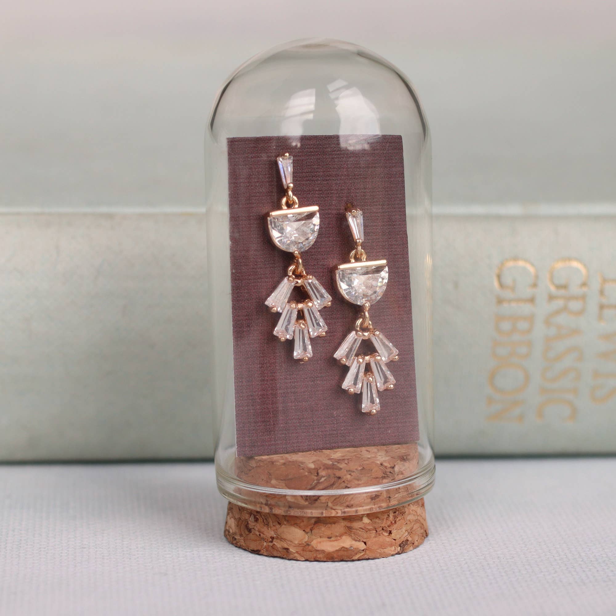 If you choose to add a glass cloche, please note that your earrings may be packaged separately. The linen card has been designed to perfectly fit the glass cloche in width, so only the length may need to be trimmed slightly before inserting.
