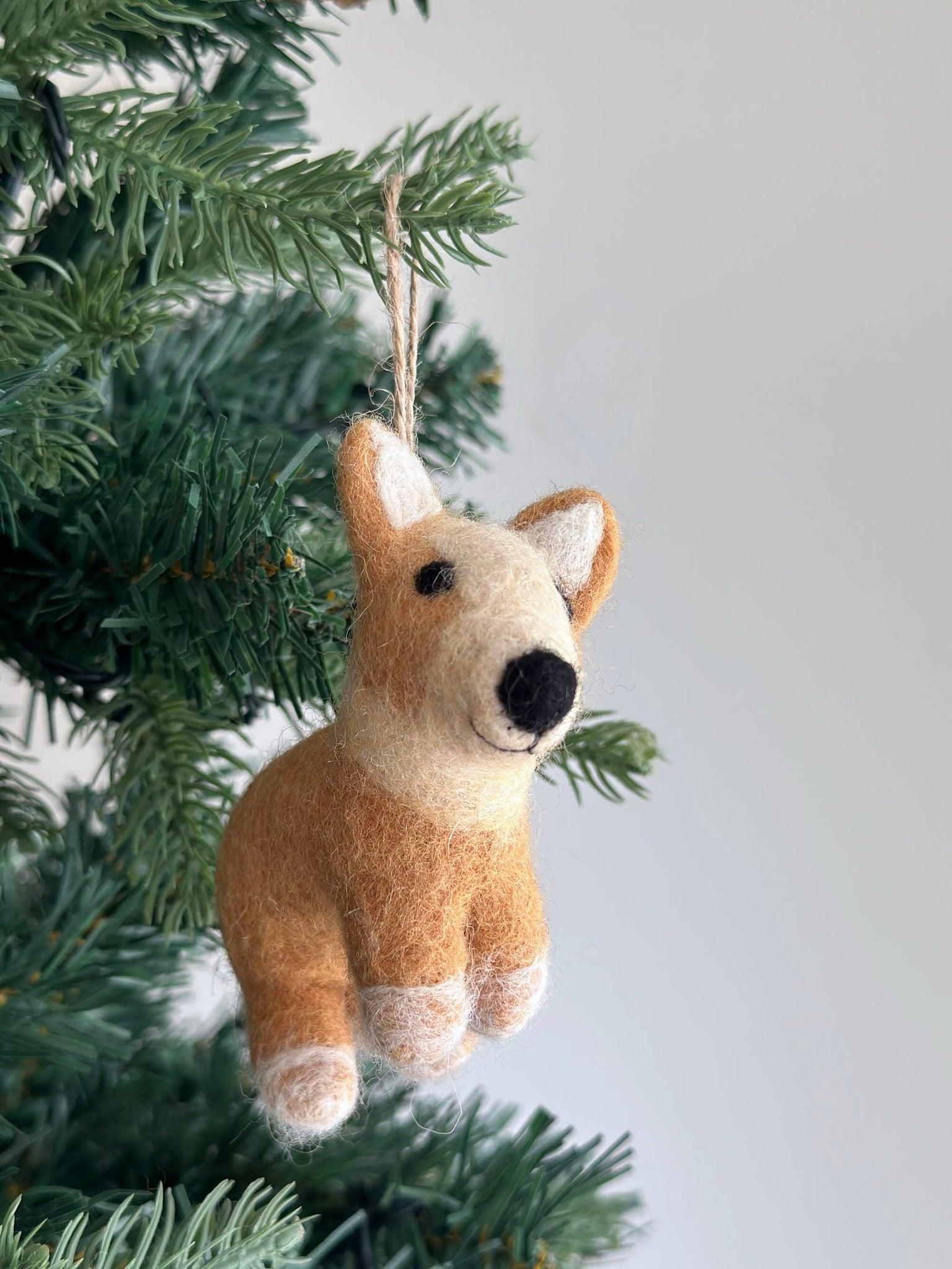 Introducing our whimsical Felt Corgi Ornament, where we've used intricate needle felting to emphasize that adorable big butt, adding an extra dose of cuteness to your holiday decor! This charming Corgi is also adorned with a festive Christmas hat, making it a perfect addition to your tree and an ideal gift for dog lovers.