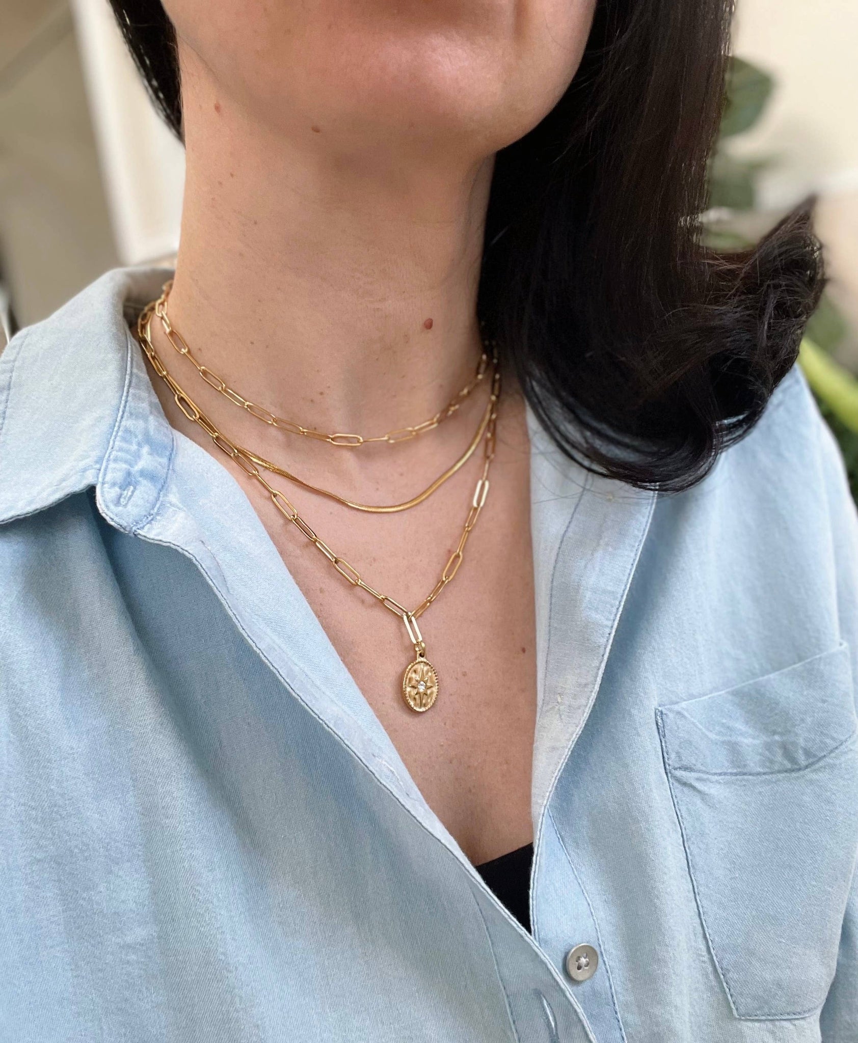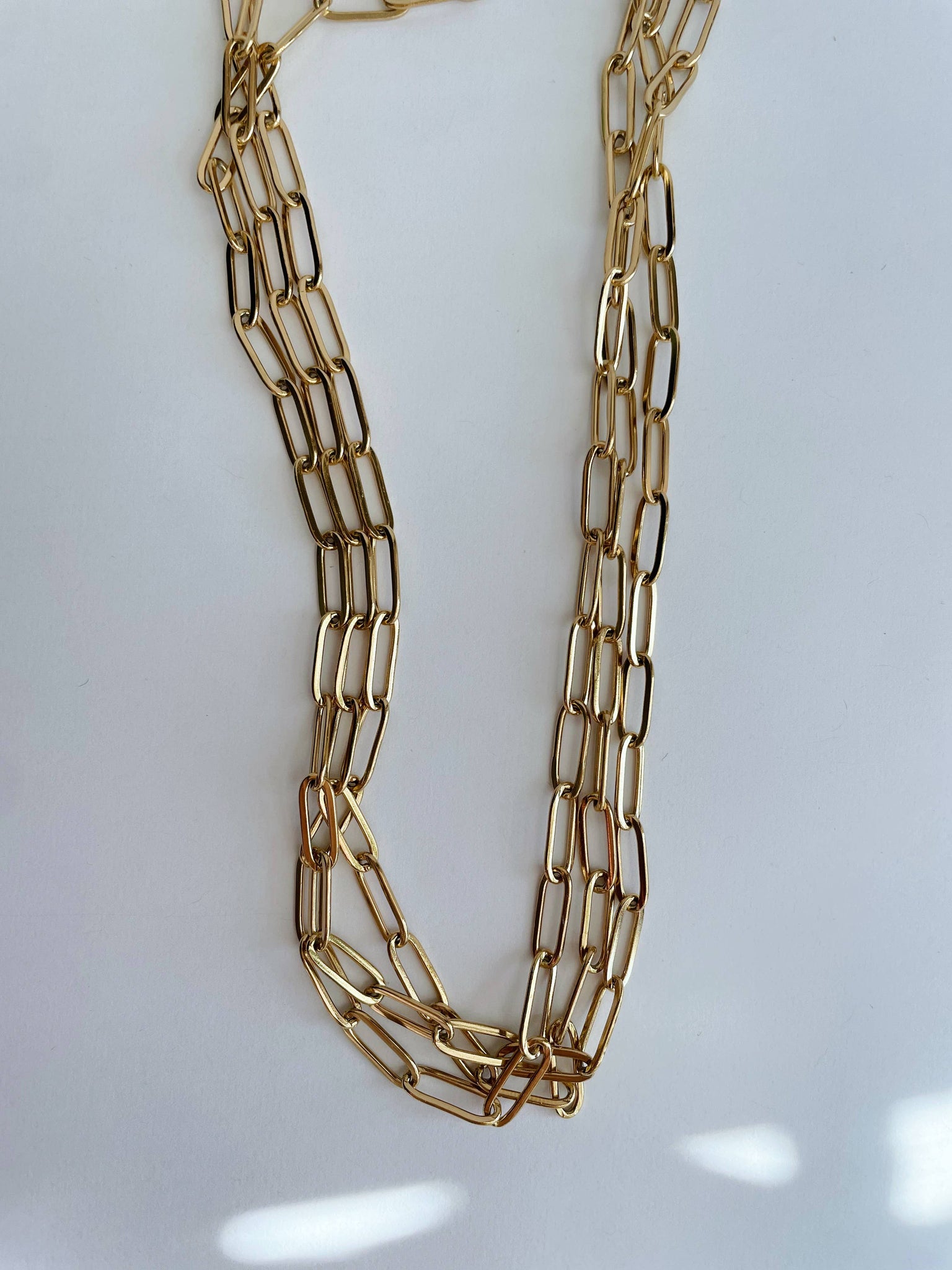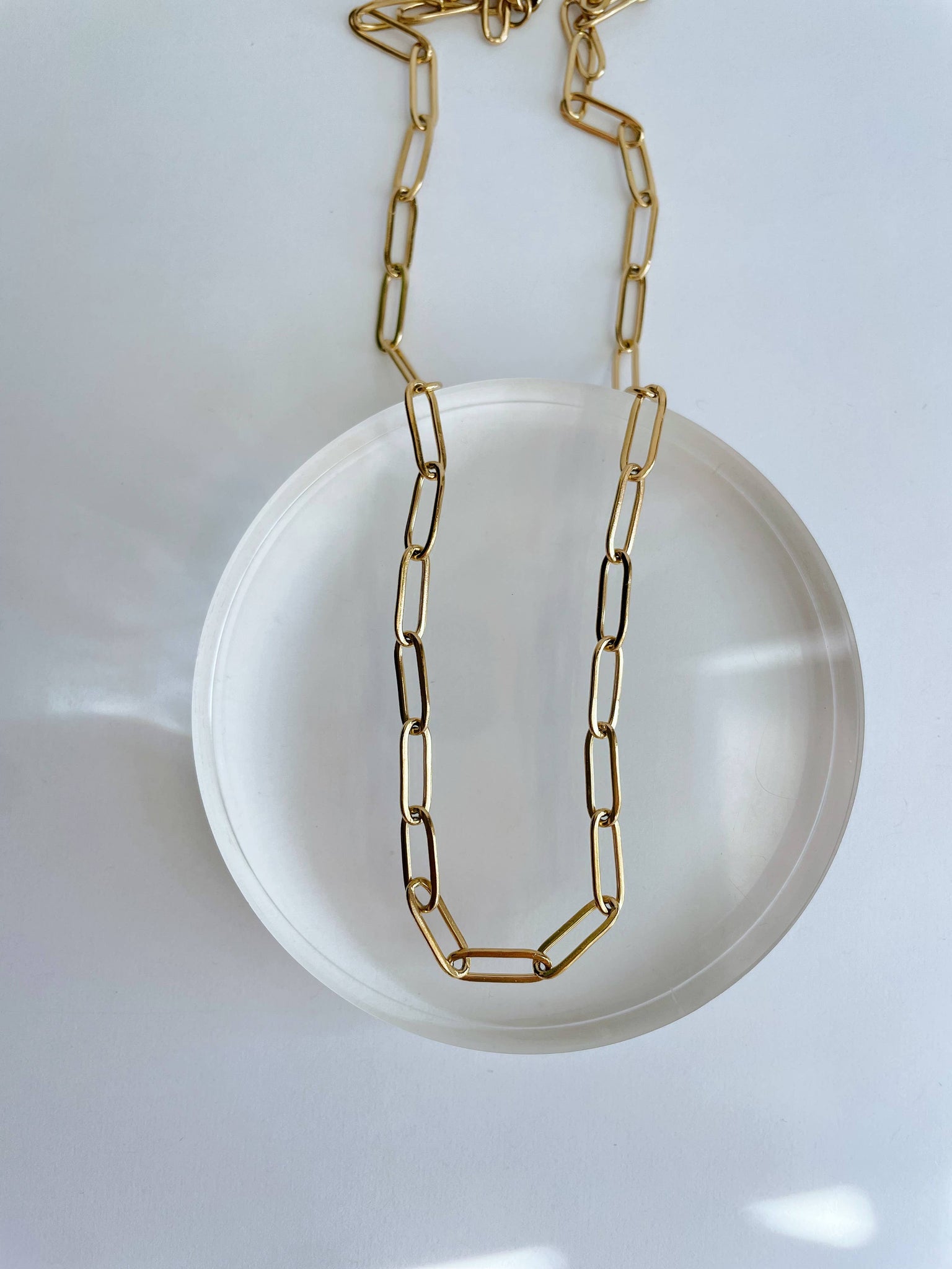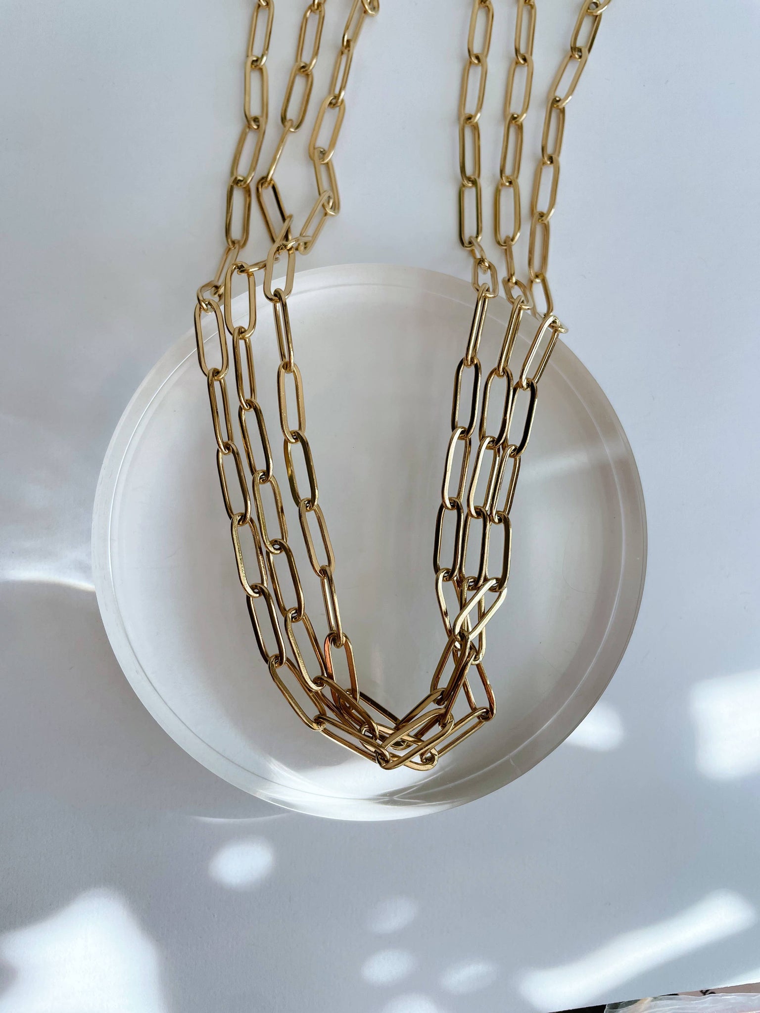 Beautiful Gold Plated Stainless Steel paperclip Chain ( each link is approx.1/2" long). the listing is for 1 single chain. Chain: 17"L plus 2" Extender. Could also be worn shorter as a choker. Great for layering. Lobster Claw closure.